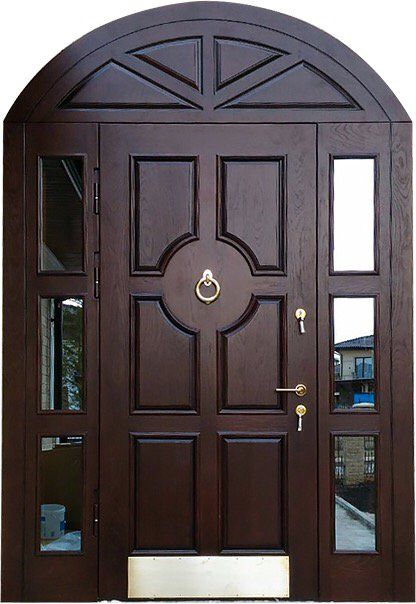 Поговорим об отделке. Вариантов декора дверей много. В большинстве случаев, для отделки элитных дверей используется массив натурального дерева или натуральный шпон с фрезеровкой. Цвет двери так же делается по желанию заказчика. Очень красиво и представительно выглядят двери с ковкой и стеклом.