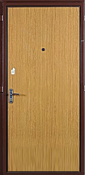 Ламинат - это доска из ДВП толщиной 4-5 мм с четырехслойным покрытием. Визуально он не отличается от натуральной древесины. Рисунок ламинированной доски может быть гладким и имитировать древесный спил или рельефным, имитирующим структуру дерева. Разнообразная цветовая гамма этого материала позволяет изготовить дверь, которая будет отлично смотреться в интерьере как квартиры, так и офиса.