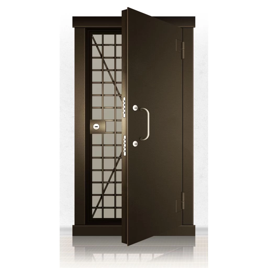 Металлические двери КХО и КХН представляют собой входные блоки, обладающие высоким уровнем взломостойкости и состоят из трех основных элементов: усиленного каркаса, сплошного металлического полотна и решетчатой двери. Дверной блок изготавливается из стального уголка 100*100 мм. Места крепления блока к стене цементируются и закрываются стальными наличниками шириной 40 мм. Крепеж заходит вглубь стены на 80 мм. В конструкции внешней створки монтируются ребра жесткости, для обшивки используется сталь толщиной не менее 3 мм. Внутренняя решетка изготавливается из прутка диаметром 16 мм. Размер ячеек решетки должен составлять не более 15 на 15 см. В точках пересечения прутья надежно приваривают друг к другу. В КХО и КХН необходимо поддерживать определенную температуру и влажность. Для этого внутреннее пространство глухой двери заполняется теплоизоляционным материалом, а по периметру двери приклеивается уплотнитель. Такие двери оборудуются замками с повышенным уровнем взломостойкости. Специализированные двери КХО и КХН в Ревдах могут быть оснащены сигнализацией, в конструкции могут быть проушины для навесного замка и элементами для опечатывания. Если идет речь о двери в комнату хранения оружия, в створке оборудуется окно для выдачи оружия и спец. средств, которое накрывается стальной дверцей.