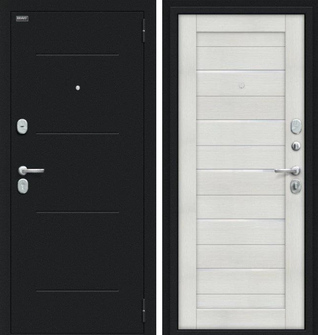 Надежная входная Браво Техно Kale Букле черное/Bianco Veralinga премиум класса по цене 34 213 руб. Большая толщина стали защитит от проникновения в ваш дом, квартиру или коттедж. Используется очень качественная фурнитура: замки, цилиндры, ручки, защелки. Покрытие и отделка двери изготовлено под внимательным контролем производителя. Дверь имеет долгий срок службы и гарантию.