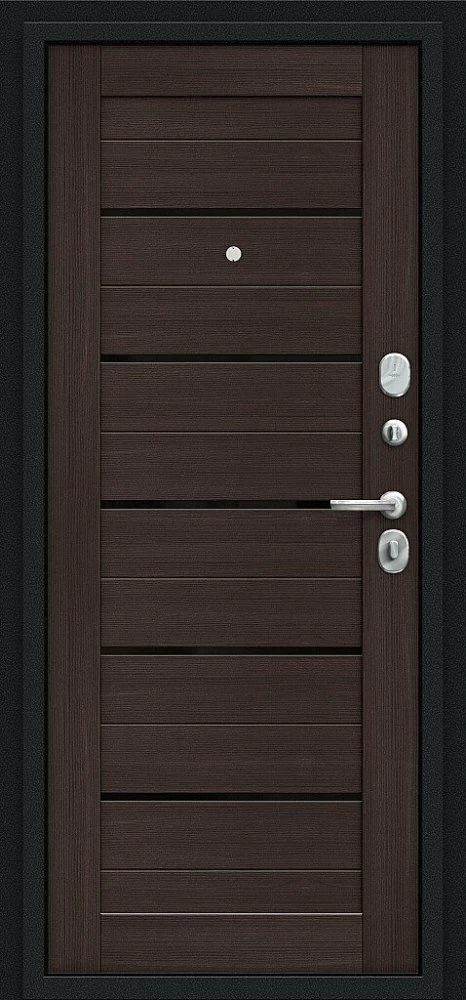 Надежная входная Браво Техно Kale Букле черное/Wenge Veralinga премиум класса по цене 34 213 руб. Большая толщина стали защитит от проникновения в ваш дом, квартиру или коттедж. Используется очень качественная фурнитура: замки, цилиндры, ручки, защелки. Покрытие и отделка двери изготовлено под внимательным контролем производителя. Дверь имеет долгий срок службы и гарантию.