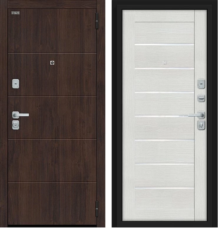 Надежная входная Дверь Браво Прайм/BChrome Almon/Bianco Melinga премиум класса по цене 39 963 руб. Большая толщина стали защитит от проникновения в ваш дом, квартиру или коттедж. Используется очень качественная фурнитура: замки, цилиндры, ручки, защелки. Покрытие и отделка двери изготовлено под внимательным контролем производителя. Дверь имеет долгий срок службы и гарантию.