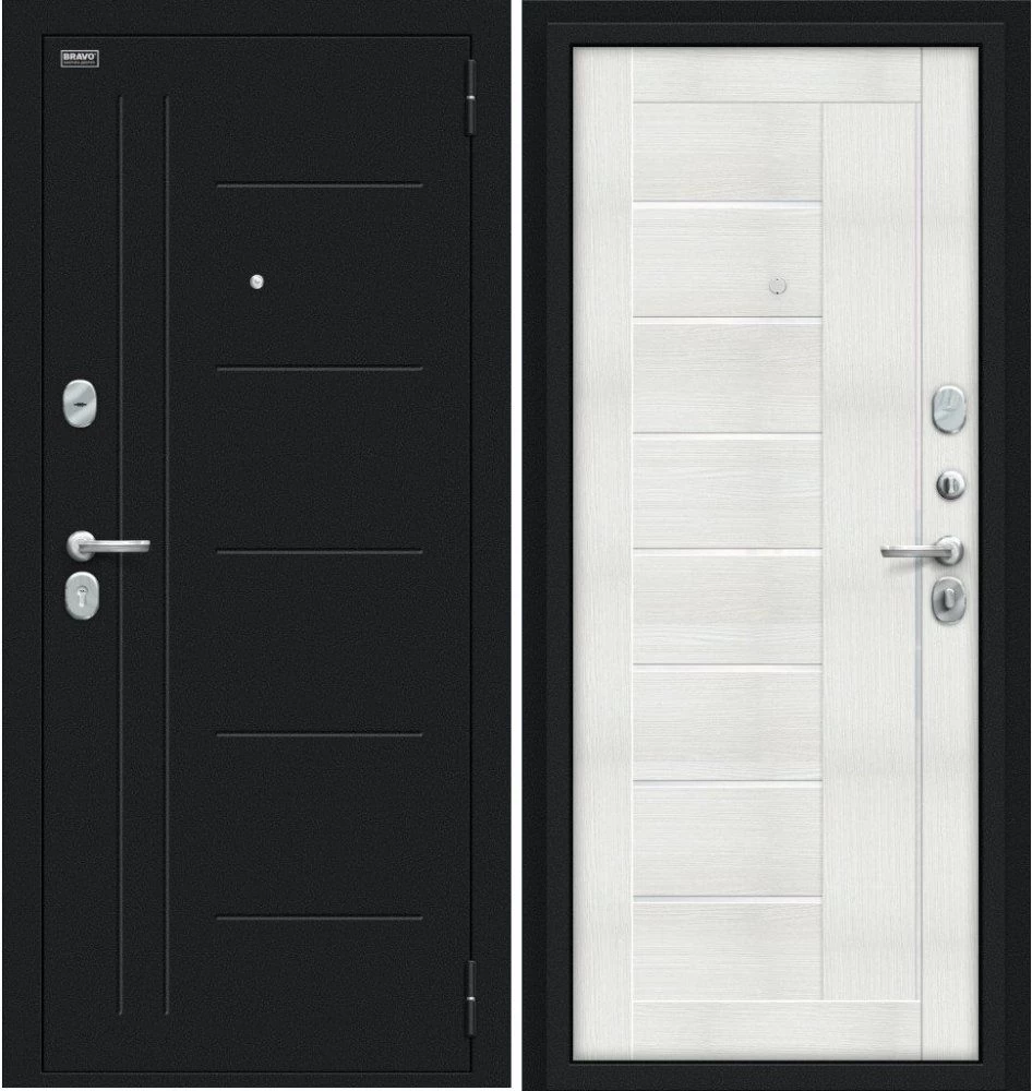 Надежная входная Дверь Браво Проф Букле черное/Bianco Veralinga премиум класса по цене 32 913 руб. Большая толщина стали защитит от проникновения в ваш дом, квартиру или коттедж. Используется очень качественная фурнитура: замки, цилиндры, ручки, защелки. Покрытие и отделка двери изготовлено под внимательным контролем производителя. Дверь имеет долгий срок службы и гарантию.