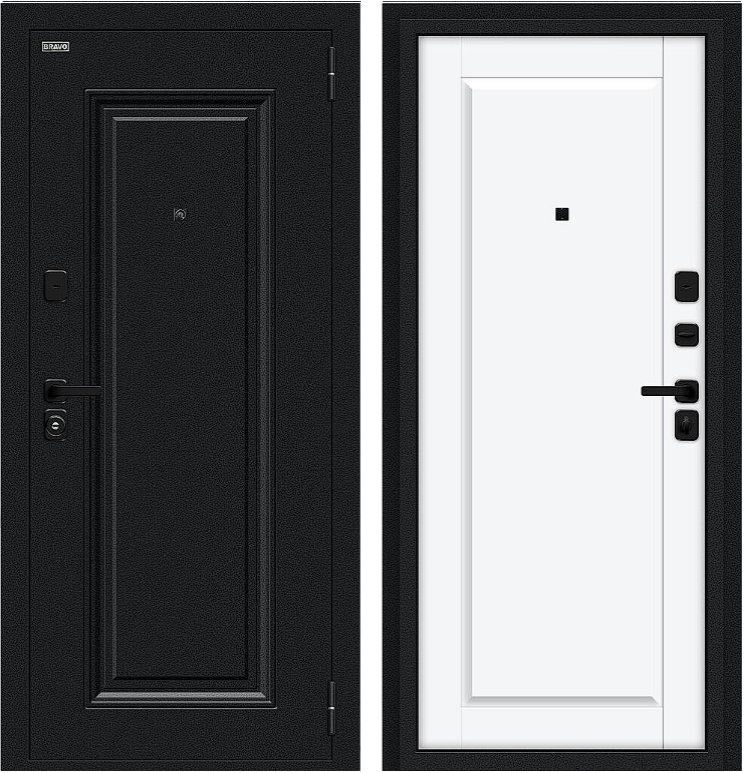 Надежная входная Дверь Браво Сьют МФ/SBlack Букле черное/White Silk премиум класса по цене 36 263 руб. Большая толщина стали защитит от проникновения в ваш дом, квартиру или коттедж. Используется очень качественная фурнитура: замки, цилиндры, ручки, защелки. Покрытие и отделка двери изготовлено под внимательным контролем производителя. Дверь имеет долгий срок службы и гарантию.