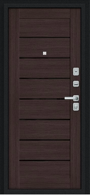 Надежная входная Дверь Браво Техно/BChrome Букле черное/Wenge Melinga премиум класса по цене 33 063 руб. Большая толщина стали защитит от проникновения в ваш дом, квартиру или коттедж. Используется очень качественная фурнитура: замки, цилиндры, ручки, защелки. Покрытие и отделка двери изготовлено под внимательным контролем производителя. Дверь имеет долгий срок службы и гарантию.