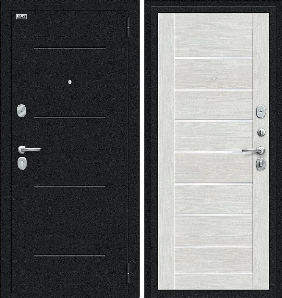 Надежная входная Дверь Браво Техно Букле черное/Bianco Veralinga премиум класса по цене 31 313 руб. Большая толщина стали защитит от проникновения в ваш дом, квартиру или коттедж. Используется очень качественная фурнитура: замки, цилиндры, ручки, защелки. Покрытие и отделка двери изготовлено под внимательным контролем производителя. Дверь имеет долгий срок службы и гарантию.
