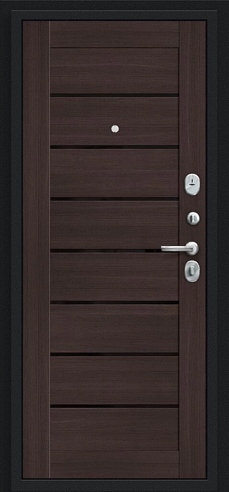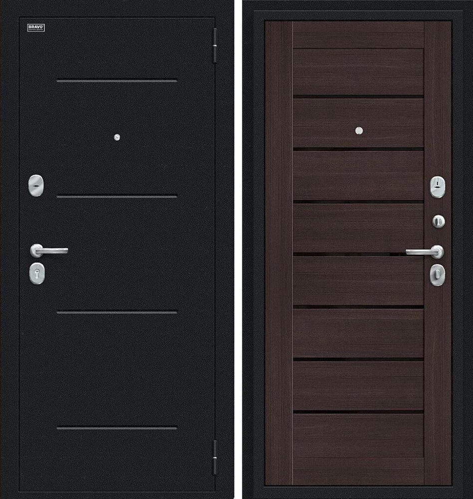 Надежная входная Дверь Браво Техно Букле черное/Wenge Veralinga премиум класса по цене 31 313 руб. Большая толщина стали защитит от проникновения в ваш дом, квартиру или коттедж. Используется очень качественная фурнитура: замки, цилиндры, ручки, защелки. Покрытие и отделка двери изготовлено под внимательным контролем производителя. Дверь имеет долгий срок службы и гарантию.