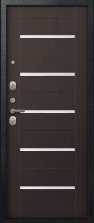 Надежная входная Дверь V-05 Черный муар - Темная лиственница премиум класса по цене 41 813 руб. Большая толщина стали защитит от проникновения в ваш дом, квартиру или коттедж. Используется очень качественная фурнитура: замки, цилиндры, ручки, защелки. Покрытие и отделка двери изготовлено под внимательным контролем производителя. Дверь имеет долгий срок службы и гарантию.